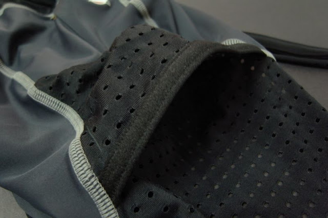 褲管邊緣一樣是使用矽膠鬆緊帶, 但卻用點狀的而非條狀設計, 目的可以達到止滑之外也能兼具透氣的效果