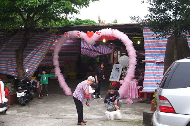 原來是有戶山中人家正在辦喜事, 整條寬敞的道路瞬間變成了免費的停車場...
