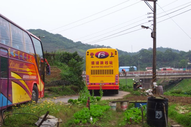 跟單車爭道的遊覽車隊, 不過倒是很敬佩這些駕駛竟然連這種地方都能把車子塞進來...