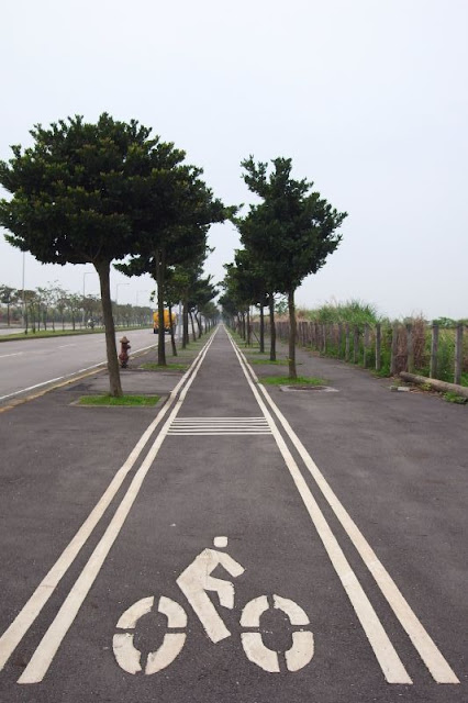 淡海新市鎮的單車道感覺很有霸氣, 直接在人行道鋪柏油路面, 兩旁還有路樹夾道