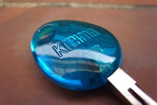 鑰匙上有樂易碼公司的商標設計