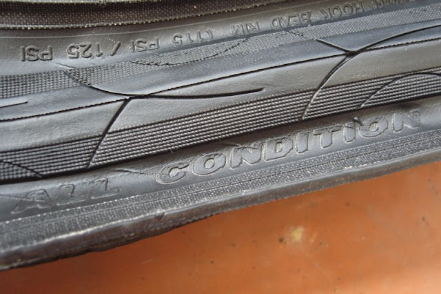 從胎面上可以看到排水的設計, 所以雨天一樣適用